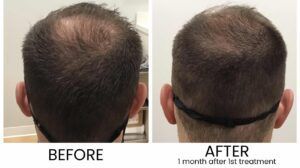 Vitamin E and a multi-peptide serum are placed on the affected area. It is then massaged into the scalp with a high frequency wand to increase product penetration and circulation. It also increases collagen & elastin production, vital building blocks for hair, skin, and nails. Near infrared light therapy is then used to stimulate blood flow and circulation to the area, stimulating follicle production. Microchanneling can be added to increase collagen & elastin production even further, and increase product penetration, further aiding in follicle stimulation. Eposomes and other options are available.